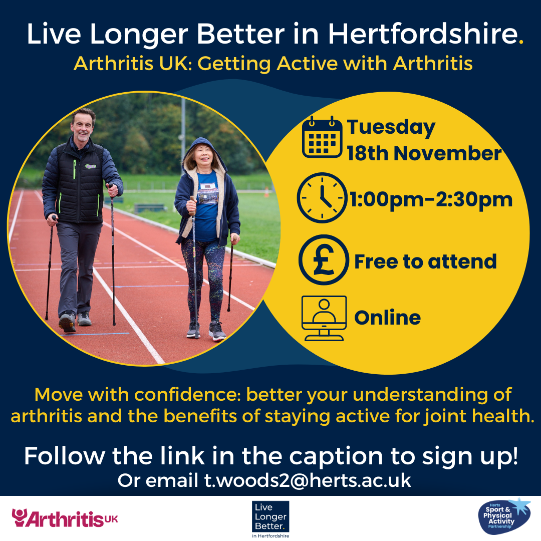To help make a difference, Arthritis UK (formerly known as Versus Arthritis) has partnered with Live Longer Better in Hertfordshire to deliver a webinar designed for people living with arthritis and for those who support them.